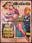 This attractive Mexican movie poster is from a crime melodrama, with film noir overtones. The eye-catching art work features a golden nude woman, two noirish looking men, and a smaller image of a circus clown!... The film starred Meche Barba, Miguel Torruco, Tony Aguilar, Maria Victoria Gutierrez and Aurora Segura. $55 |
