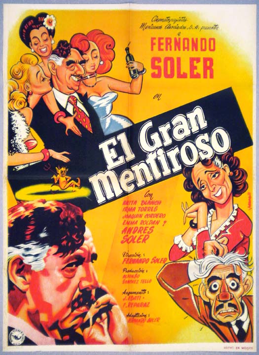 Impressive Mexican comedy movie poster features vibrant coloring and great caricatures of the stars... The film starred Fernando Soler, Anita Blanch, Andres Soler, Irma Torres and Joaquin Cordero. $165 |