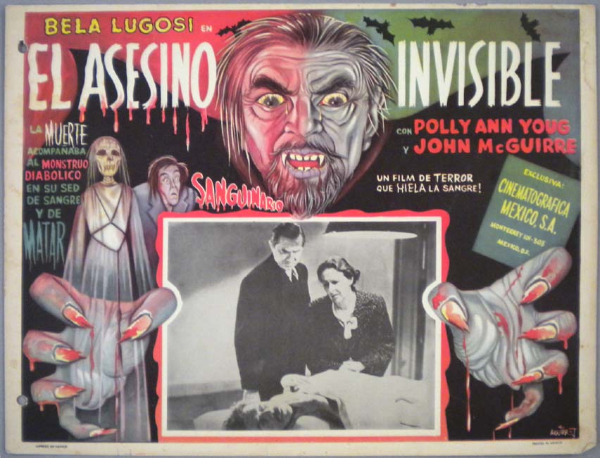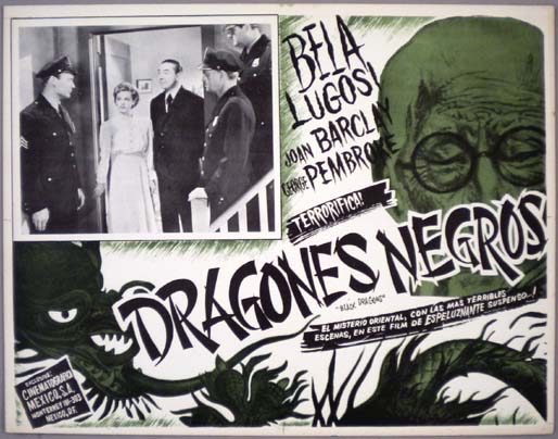 Beautiful Mexican jumbo lobby card (12.75x16") from the 1942 Monogram horror film, BLACK DRAGONS, which starred Bela Lugosi, Joan Barclay, George Pembroke, Clayton Moore and Robert Frazer. $20 each |