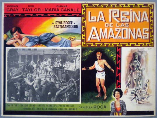 Beautiful Mexican jumbo lobby card (12x16.25") from the 1960 Italian sword and sandal / fantasy / action film, COLOSSUS AND THE AMAZON QUEEN, which starred Dorian Gray, Rod Taylor, Gianna Maria Canale and Ed Fury. $15 each |