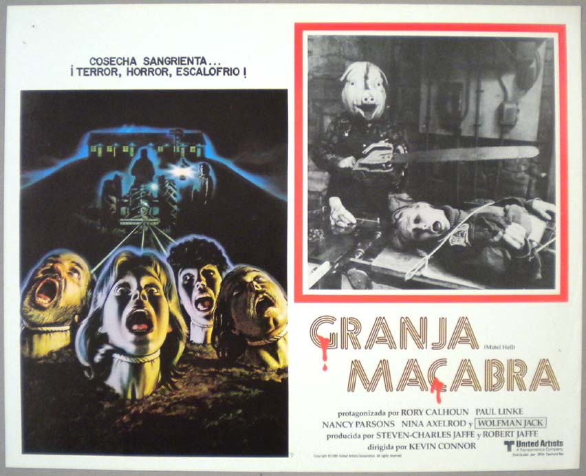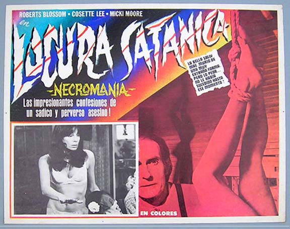 Beautiful Mexican jumbo lobby card (12x15") from the 1974 AIP horror film, DERANGED, which starred Roberts Blossom, Cosette Lee, Leslie Carlson, Robert Warner and Marcia Diamond. $20 each |