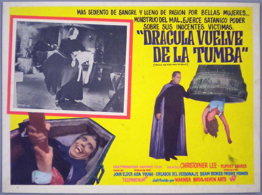 Beautiful Mexican jumbo lobby card (12.5x16.5") from the 1966 Hammer vampire / horror film, DRACULA PRINCE OF DARKNESS, which starred Christopher Lee, Barbara Shelley, Andrew Keir, Francis Matthews and Suzan Farmer. $25 each |