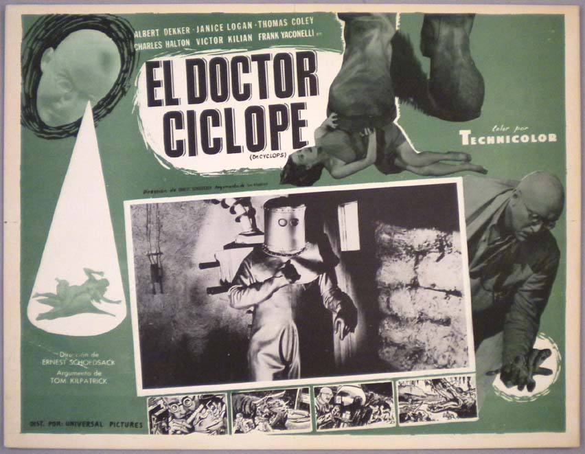 Great Mexican jumbo lobby card (12.5x16.25") from the 1940 Paramount sci-fi / horror film, DR. CYCLOPS, which starred Albert Dekker, Thomas Coley, Janice Logan, Charles Halton and Victor Kilian. $20 each |