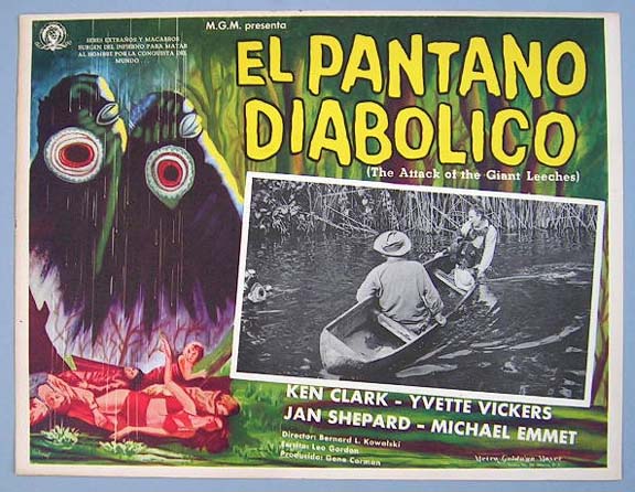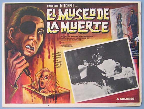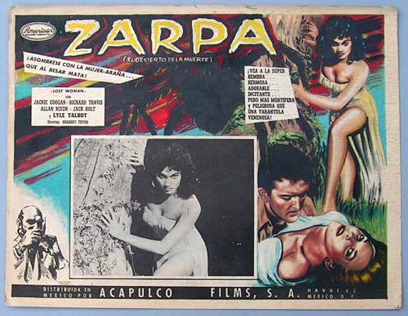 Beautiful Mexican lobby card (11x14") from the 1965 Essen Prod. horror / sci-fi film, STING OF DEATH, which starred Joe Morrison, Valerie Hawkins, John Vella, Jack Nagle, Sandy Lee Kane and Deanna Lund. $25 |