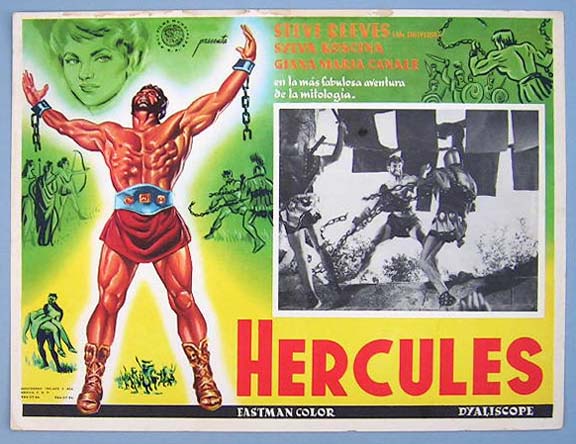 Beautiful Mexican jumbo lobby card (12.5x16.5") from the 1962 Italian sword and sandal / sci-fi film, FIRE MONSTER VS. THE SON OF HERCULES, which starred Reg Lewis, Margaret Lee, Luciano Marin, Andrea Aureli and Birgit Bergen. $15 each |