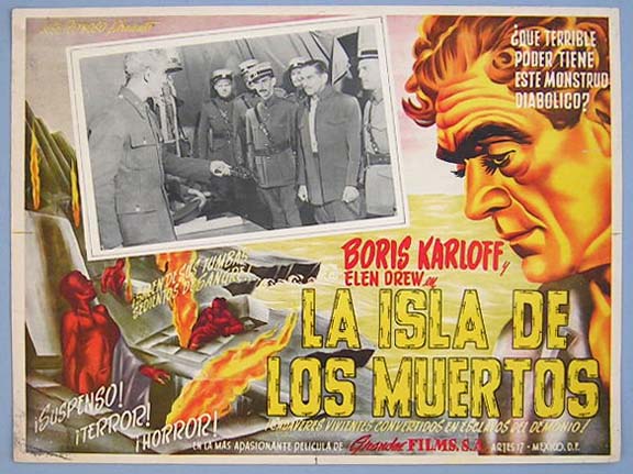 Beautiful Mexican jumbo lobby card (12x16") from the 1945 RKO horror film, THE BODY SNATCHER, which starred Boris Karloff, Bela Lugosi, Henry Daniell, Edith Atwater, Russell Wade and Rita Corday. The film was directed by Robert Wise, produced by Val Lewton, and was based on a novel by Robert Louis Stevenson. $25 |