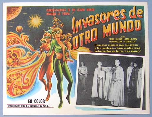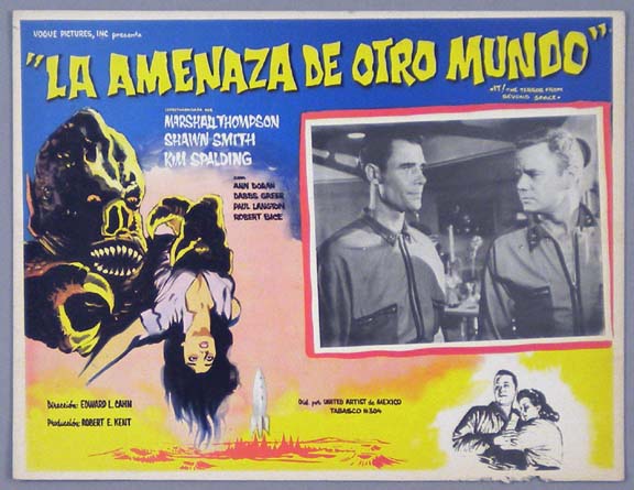Beautiful Mexican jumbo lobby card (12.5x16.5") from the 1961 AIP sci-fi / space travel / alien monster film, PHANTOM PLANET, which starred Dean Fredericks, Coleen Gray, Anthony Dexter and Francis X. Bushman. $20 |