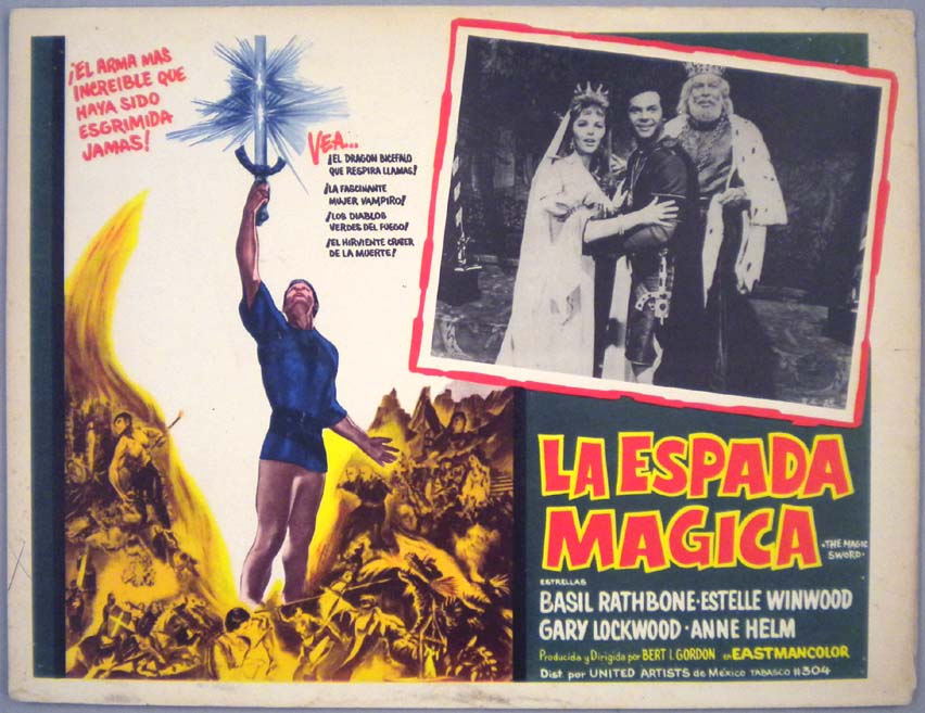 Beautiful Mexican lobby card (11x14") from the 1957 AIP horror film, THE UNDEAD, which starred Pamela Duncan, Richard Garland, Allison Hayes, Val Dufour, Mel Welles, Billy Barty and Bruno VeSota. The film was directed by Roger Corman. $65 |