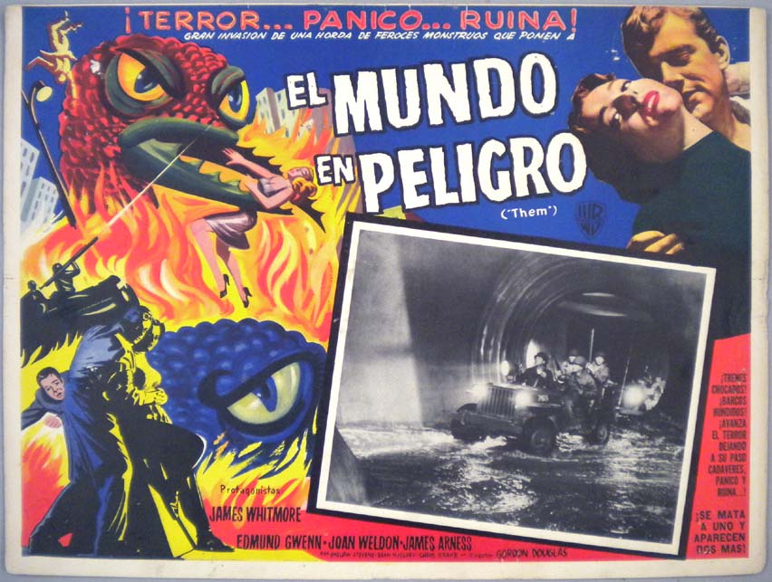 Beautiful Mexican jumbo lobby card (12.75x16.5") from the 1954 Warner Brothers sci-fi / monster film, THEM!, which starred James Whitmore, Edmund Gwenn, Joan Weldon, James Arness, Onslow Stevens and Olin Howland. $65 |