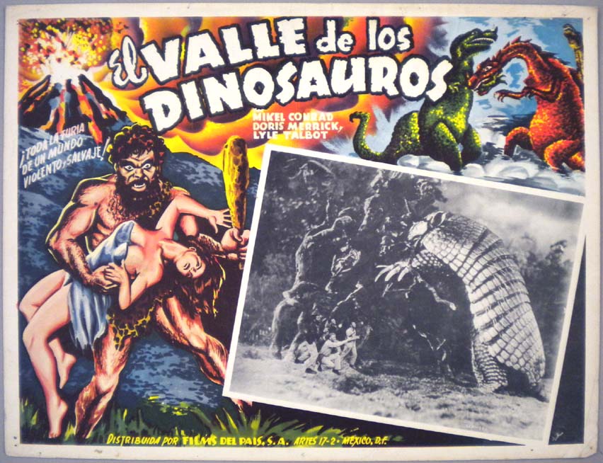 Beautiful Mexican jumbo lobby card (12.5x16") from the 1952 independent sci-fi / caveman / dinosaur film, UNTAMED WOMEN, which starred Mikel Conrad, Doris Merrick, Richard Monahan, Morgan Jones and Midge Ware. $65 |