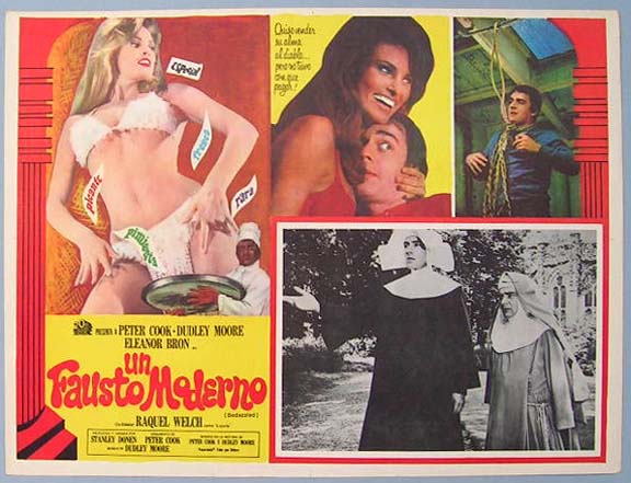 Beautiful Mexican jumbo lobby card (12.5x16.5") from the 1968 20th Century Fox fantasy / comedy film, BEDAZZLED, which starred Peter Cook, Dudley Moore, Eleanor Bron and Raquel Welch. $20 each |