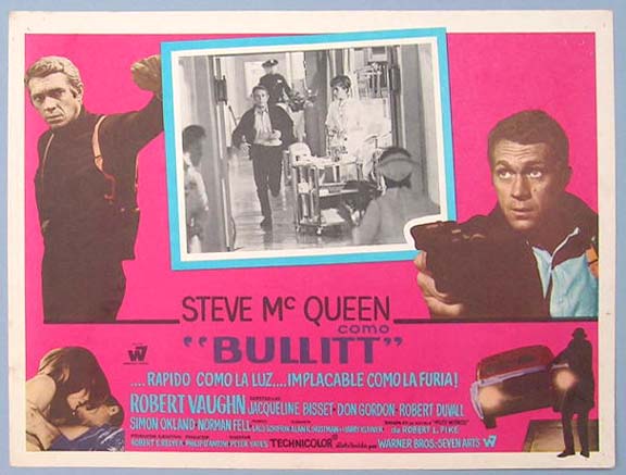 Beautiful Mexican jumbo lobby card (12.5x16.5") from the 1968 Warner brothers crime / action film, BULLET PROOF, which starred Steve McQueen, Robert Vaughn, Jacqueline Bisset, Don Gordon, Robert Duvall and Simon Oakland. $20 each |