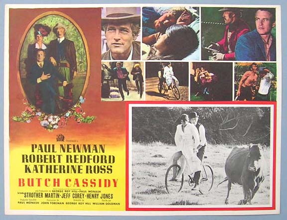 Beautiful Mexican jumbo lobby card (12.5x16.5") from the 1969 20th Century Fox western / comedy film, BUTCH CASSIDY AND THE SUNDANCE KID, which starred Paul Newman, Robert Redford, Katharine Ross, Strother Martin and Henry Jones. $20 each |