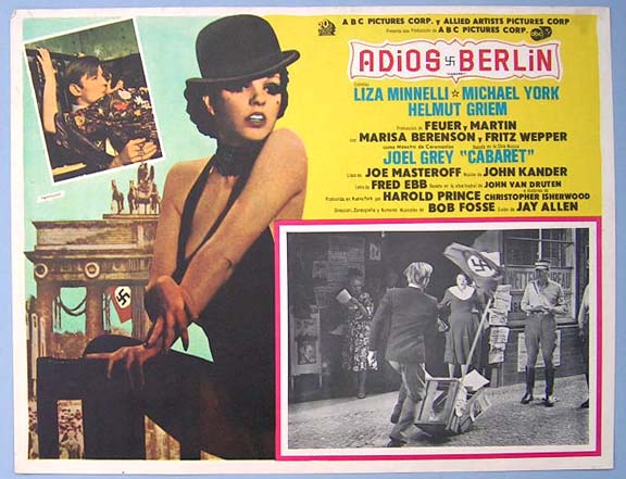 Beautiful Mexican jumbo lobby card (12.5x16.5") from the 1972 Allied Artists musical film, CABARET, which starred Liza Minnelli, Michael York, Helmut Griem, Joel Grey, Fritz Wepper and Marisa Berenson. $25 each |