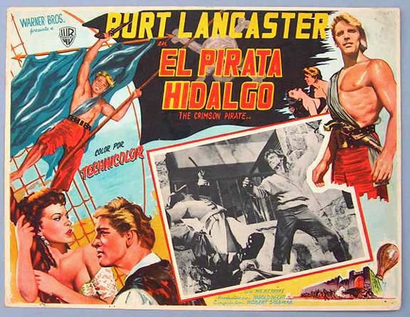 Beautiful Mexican jumbo lobby card (12.5x16.5") from the 1940 Warner Brothers adventure / romance film, THE SEA HAWK, which starred Errol Flynn, Brenda Marshall, Claude Rains, Donald Crisp, Flora Robson, Alan Hale and Henry Daniell. $20 each |