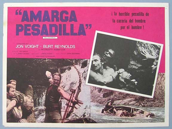 Beautiful Mexican jumbo lobby card (12.5x16.5") from the 1972 United Artists suspense / action film, DELIVERANCE, which starred Jon Voight, Burt Reynolds, Ned Beatty, Ronny Cox and Ed Ramey. $15 each |