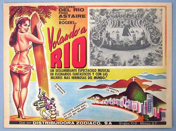 Beautiful Mexican jumbo lobby card (12x16") from the 1933 RKO musical comedy film, FLYING DOWN TO RIO, which starred Dolores del Rio, Gene Raymond, Raul Roulien, Ginger Rogers and Fred Astaire. $25 |