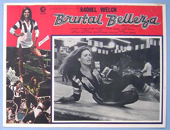 Beautiful Mexican jumbo lobby card (12.5x16.5") from the 1972 MGM roller derby film, KANSAS CITY BOMBER, which starred Raquel Welch, Kevin McCarthy, Helena Kallianiotes, Norman Alden and Jeanne Cooper. $20 each |