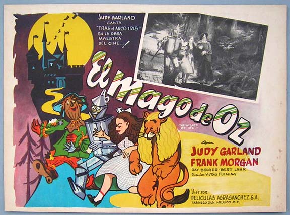 Beautiful Mexican jumbo lobby card (12.5x16.5") from the 1939 MGM musical / fantasy film, THE WIZARD OF OZ, which starred Judy Garland, Frank Morgan, Ray Bolger, Bert Lahr, Jack Haley, Billie Burke and Margaret Hamilton. $135 each |