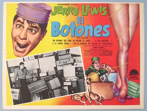 Beautiful Mexican jumbo lobby card (12.5x16.5") from the 1960 Paramount comedy film, THE BELLBOY, which starred Jerry Lewis, Alex Gerry, Bob Clayton, Sonnie Sands and Eddie Shaeffer. $15 each |