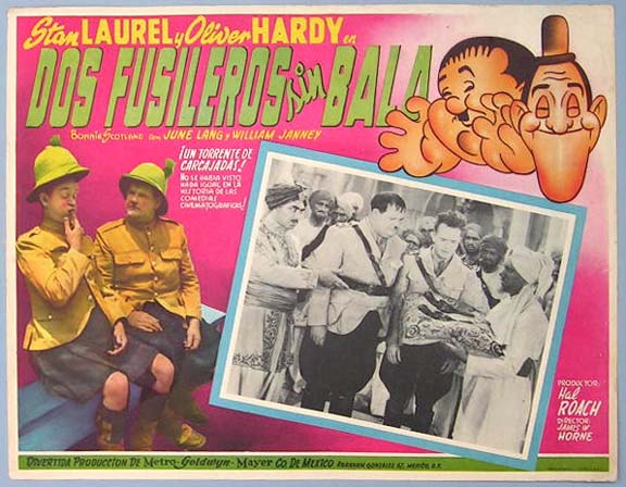 Beautiful Mexican jumbo lobby card (12x16") from the 1933 Hal Roach / MGM comedy film, SONS OF THE DESERT, which starred Stan Laurel, Oliver Hardy, Charley Chase, Mae Busch, Dorothy Christy and Lucien Littlefield. $20 each |