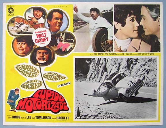Beautiful Mexican jumbo lobby card (12.5x16.5") from the 1969 Walt Disney Volkswagen / family / VW / comedy film, THE LOVE BUG, which starred Dean Jones, Michele Lee, Buddy Hacket, David Tomlinson and Joe Flynn. $20 each |
