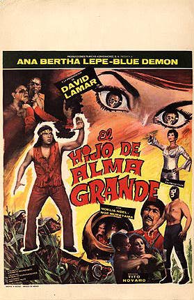 Colorful Mexican horror / sci-fi movie poster with lurid color and a nice portrait of the hideous monster. This was the first half of the two-film horror series, which concluded with, Huella Macabra. There is some edge wear, plus an area of discoloration caused by a piece of tape on the back, but these flaws are not too distracting. The poster will still display quite well... The film starred Eric del Castillo, Jaime Fernandez, Elsa Cardenas, Carman Molina and Ramon Bugarini. $30 |