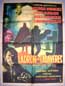 Great masked hero / sci-fi serial poster pictures various scenes from the film, including two showing the masked wrestler, La Sombra. Colorful halfsheet / giant lobby card with some great action images. This is a horizontal format poster that measures approximately 13.5"x 22." The poster has some tears and light wear on the borders and there are two vertical folds at the center, but these flaws are not very distracting. It will display well... This movie starred Armando Silvestre, Alicia Caro, Rodolfo Landa, Lobo Negro and Fernando Oses. $20 Each |