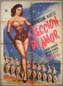 Colorful Argentine onesheet poster (29x43") from a Spanish-language musical film. The onesheet pictures a great image of Ms. Lamarque, plus an attractive montage of other scenes of the movie. There is wear and tears along the folds and edges, plus a hole at the center of the upper fold. However, the colors are bright and the poster would not be difficult to repair... The film starred Libertad Lamarque, Juan Jose Miguez, Carlos Castro and Bertha Moss. $30 |