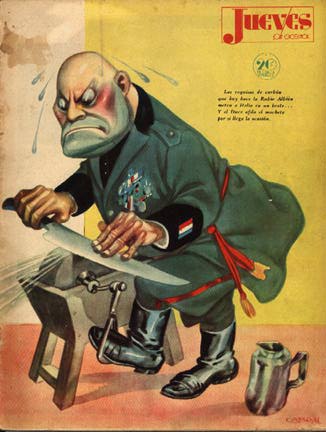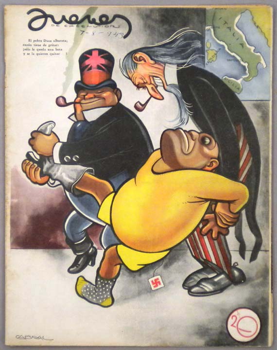 WW2. Nice inside caricature of Mussolini. Measures