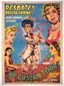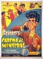 Colorful Mexican movie poster from a Cuban-produced Tin Tan comedy film. The onesheet features vibrant colors and wonderful, Cabral-like graphics. Many collectors attribute the poster to Cabral, and the graphics certainly have the right style -- right down to Tin Tan's extended pinkiesThere is some toning along the vertical fold, but otherwise, the poster looks great... The film starred German 'Tin Tan' Valdes, Garrido y Pinero, Sonia Benguria, Olga Uz, Aidita Artigas and Las Mulatas Criollas. (This poster is mounted on linen, so it must be sent rolled.) $495 |
