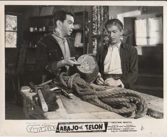 Original B&W still from a 1956 Mexican comedy film. There are a few very light bends -- but no major flaws... This movie starred Adalberto 'Resortes' Martinez, Kitty de Hoyos, Wolf Ruvinskis, Luis Aldas, Sara Guash, Guillermo Orea and Lucha Moreno. $15 |