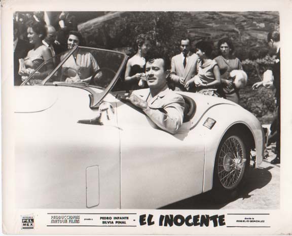 Original B&W still from a 1955 Mexican comedy film. Great image of Pedro Infante in a sports car... This movie starred Pedro Infante, Silvia Pinal, Sara Garcia, Oscar Ortiz de Pinedo and Armando Saenz. $25 |