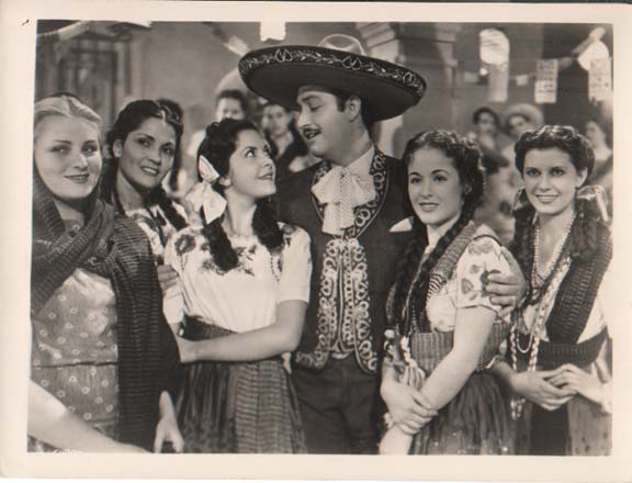 Original B&W still from an unidentified Mexican ranchera film starring Jorge Negrete -- pictured here with five female co-stars. This movie was probably produced in the 1940s. $20 |
