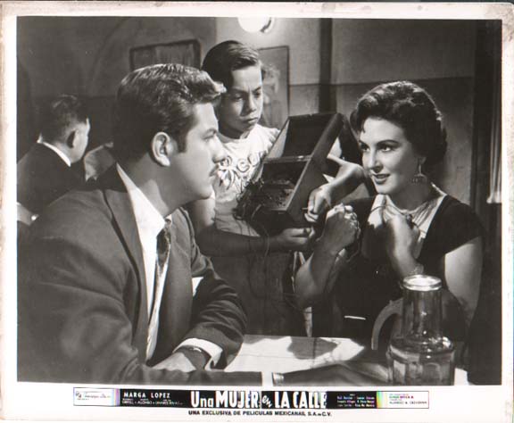 Original B&W still from a 1962 Mexican musical comedy film. Light signs of use -- but no major flaws... This movie starred Luis Aguilar, Lucha Villa, Fernando 'Mantequilla' Soto, Celia Viveros and Laila Buentello. $10 |