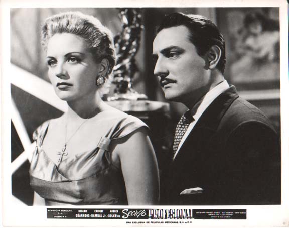 Original B&W still from a 1954 Mexican film. Great portrait of Rosario Granados and Ramon Gay... This movie starred Rosario Granados, Ramon Gay, Silvia Derbez, Andrea Palma, Rosa Maria Moreno and Anita Blanch. $15 |