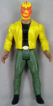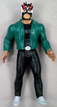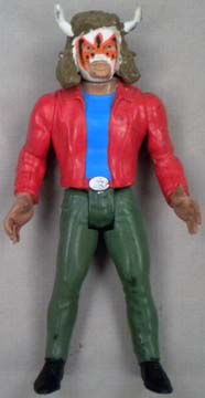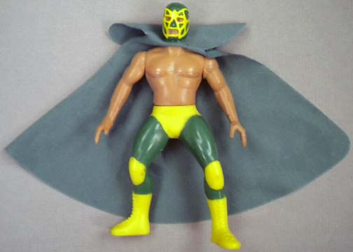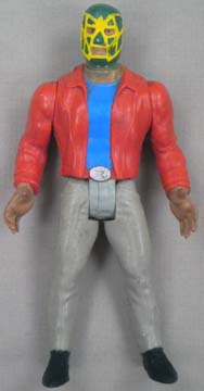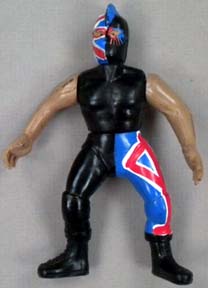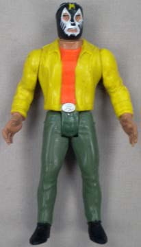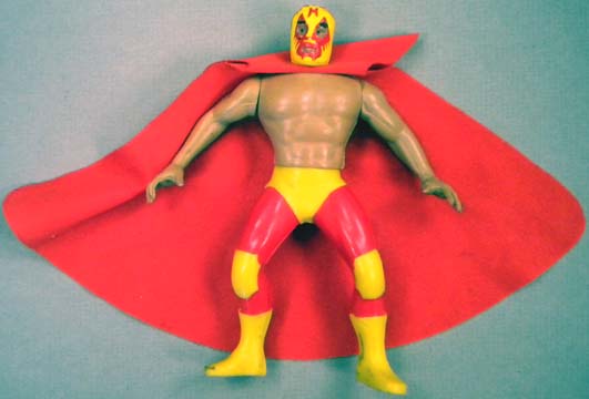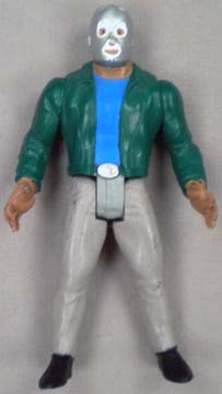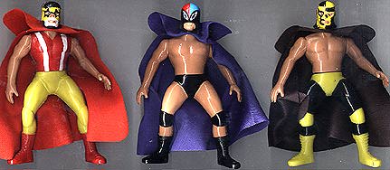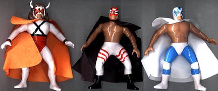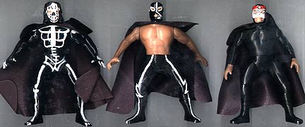 Great 5.5" posable action figures are well-made -- each accurately portraying a real-life Mexican wrestling star. This series were never produced with display cards, so all figures are sold loose. These toys were made in Mexico, but they are of far better quality, than the typical Mexican action figure. Interestingly enough, some were made with the Luchador in his wrestling outfit, while there are some variations with the wrestler wearing his mask, but otherwise dressed in street clothes. There are approximately 100 figures in this series (including a few midget wrestlers). |